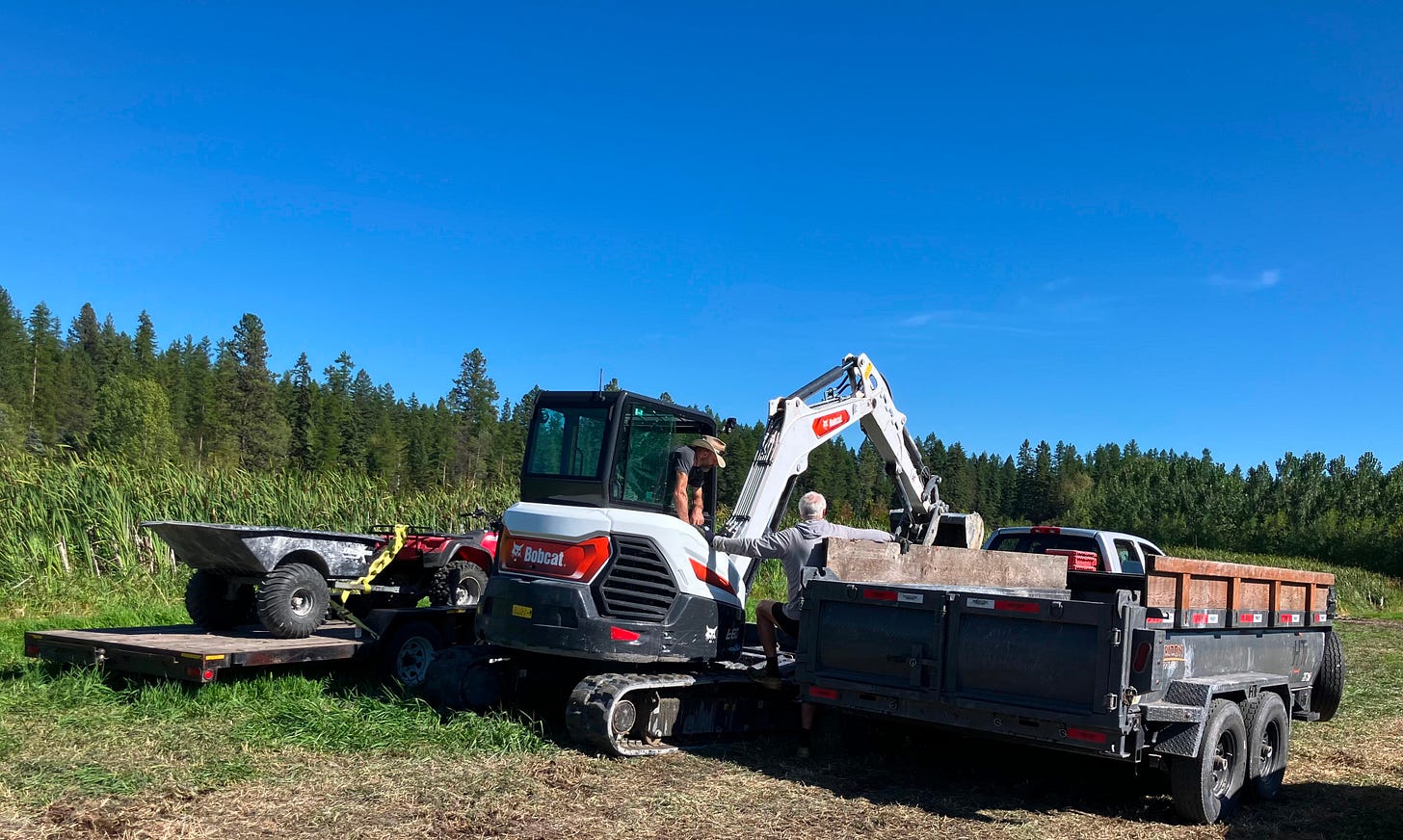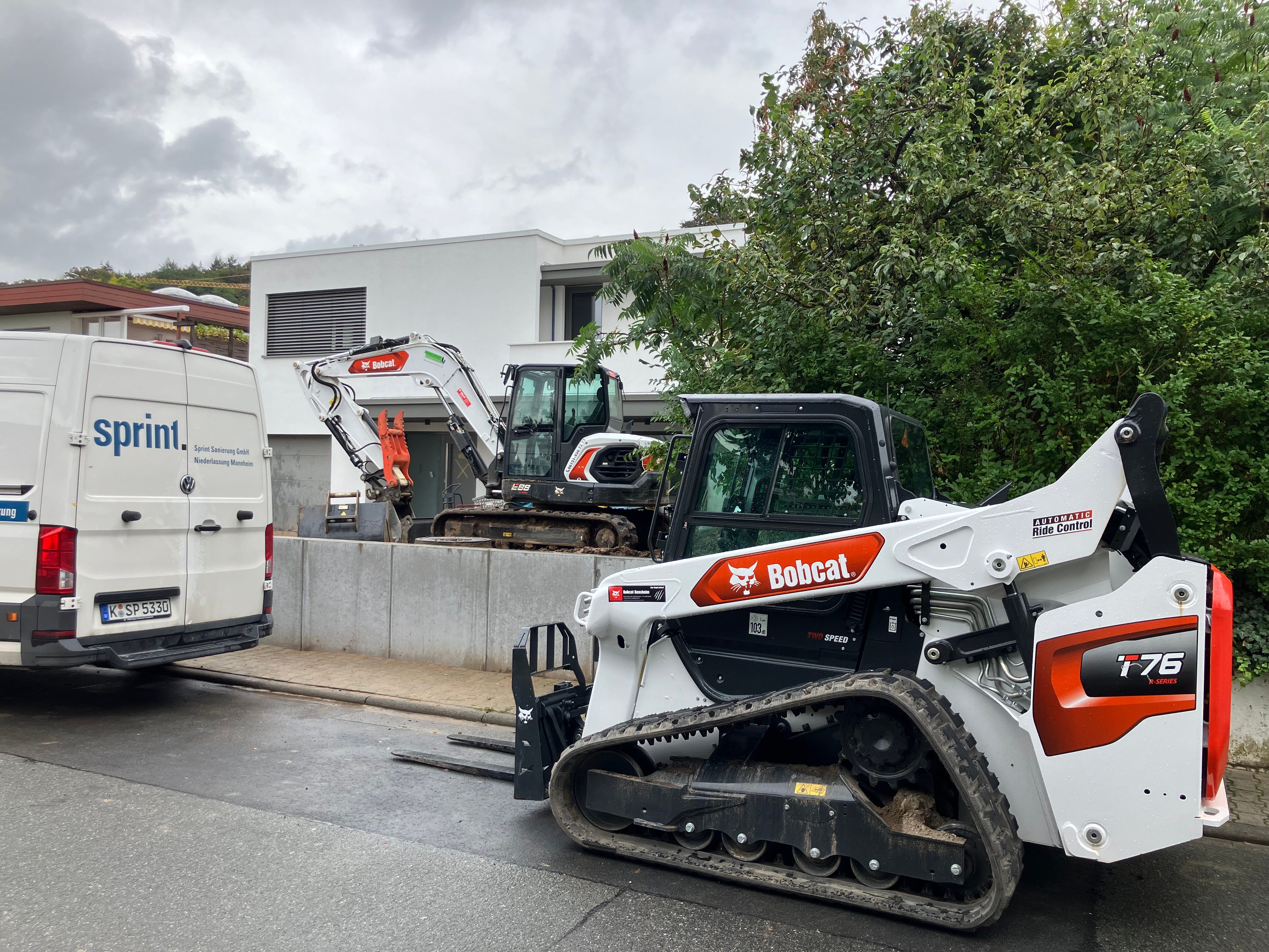 Here’s the American version of that excavator on a job we did in early September. (I might have taken this picture from the cab of the skid steer, identical to the one in Germany.)