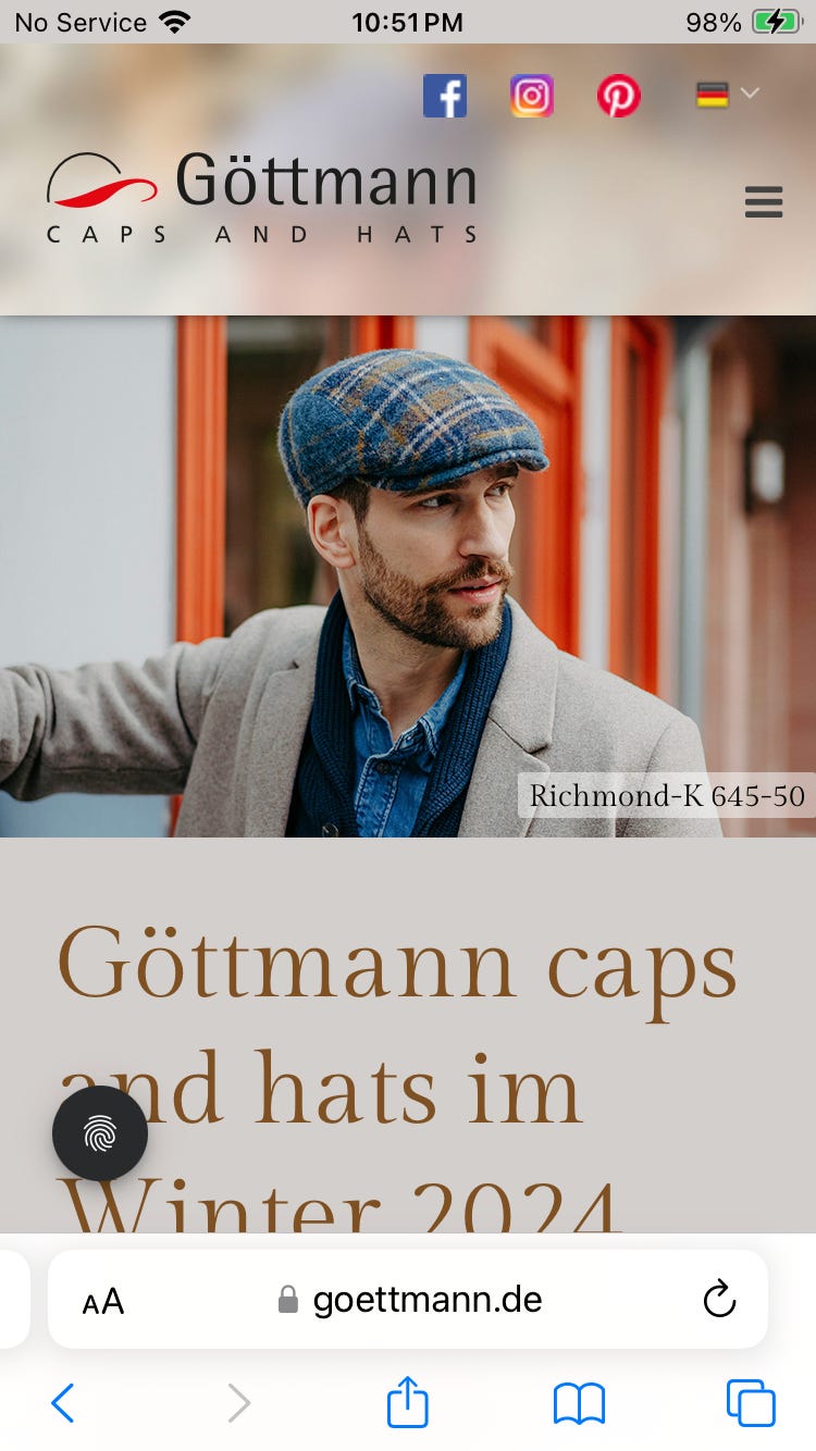 I got a little flack from a couple readers for wearing a baseball cap in a couple pictures in a farcical post. Well, lads, don’t worry, I’ll wear my fine Goettmann cap in future posts.