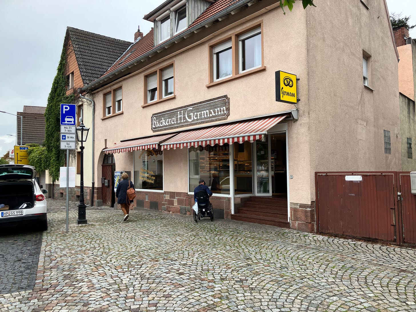 When Bern was off from work, we strategized on the plan for doing kla.tv interviews while I was in Europe. I went around the town and countryside with Andy on bicycles lent to us by Bernd’s parents in the town just down the road. Here’s the local bakery: